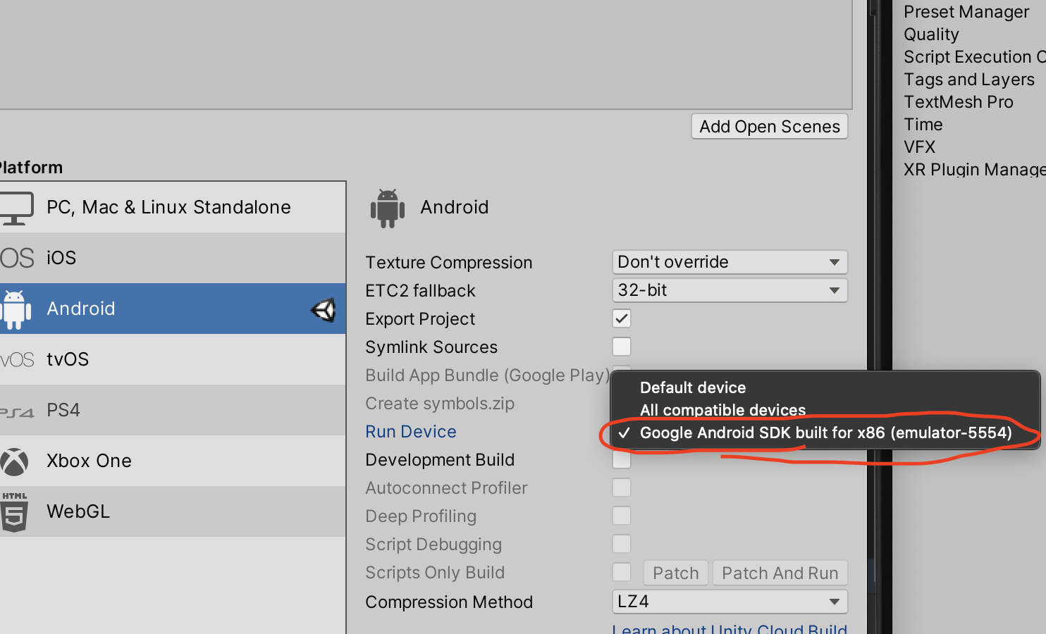 유니티 프로젝트 안드로이드 스튜디오의 에뮬레이터와 연동하기