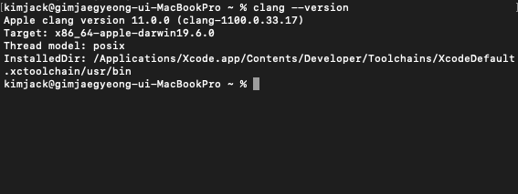 우선 당신이 혹시 XCode를 설치했다면 Clang 은 아마 이미 깔려 있을 가능성이 있다. 이를 확인하기 위해서는 터미널을 열고 다음 커맨드를 입력해본다.