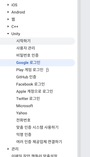 자 우선 여기가 파이어베이스 메뉴얼인데, 이 글을 보면 Game Center로 로그인하는 카테고리만 쏙 빠져있다.