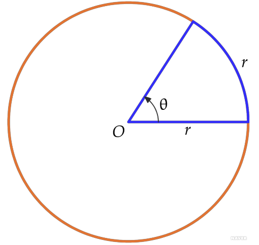 반지름이 1인 원의 호의 길이가 1인 중심각을 1 라디안이라고 함.