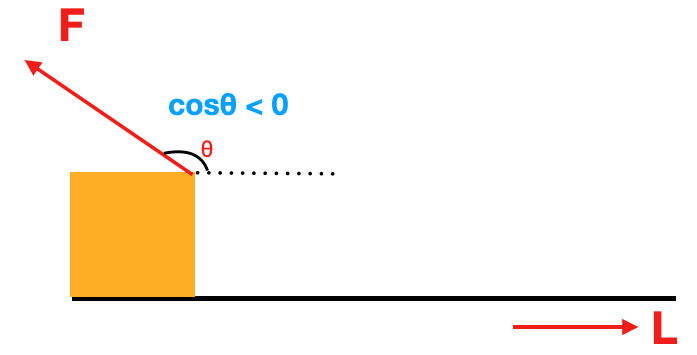 F에서 L의 방향으로 작용하는 크기는 F cosθ 이다.