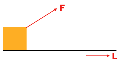 위 그림 같이 가한 힘(F)이 방향(L)과 100프로 일치하기에 힘이 100% 일로 작용을 한 것이고 효율은 100%라고 할 수 있다.